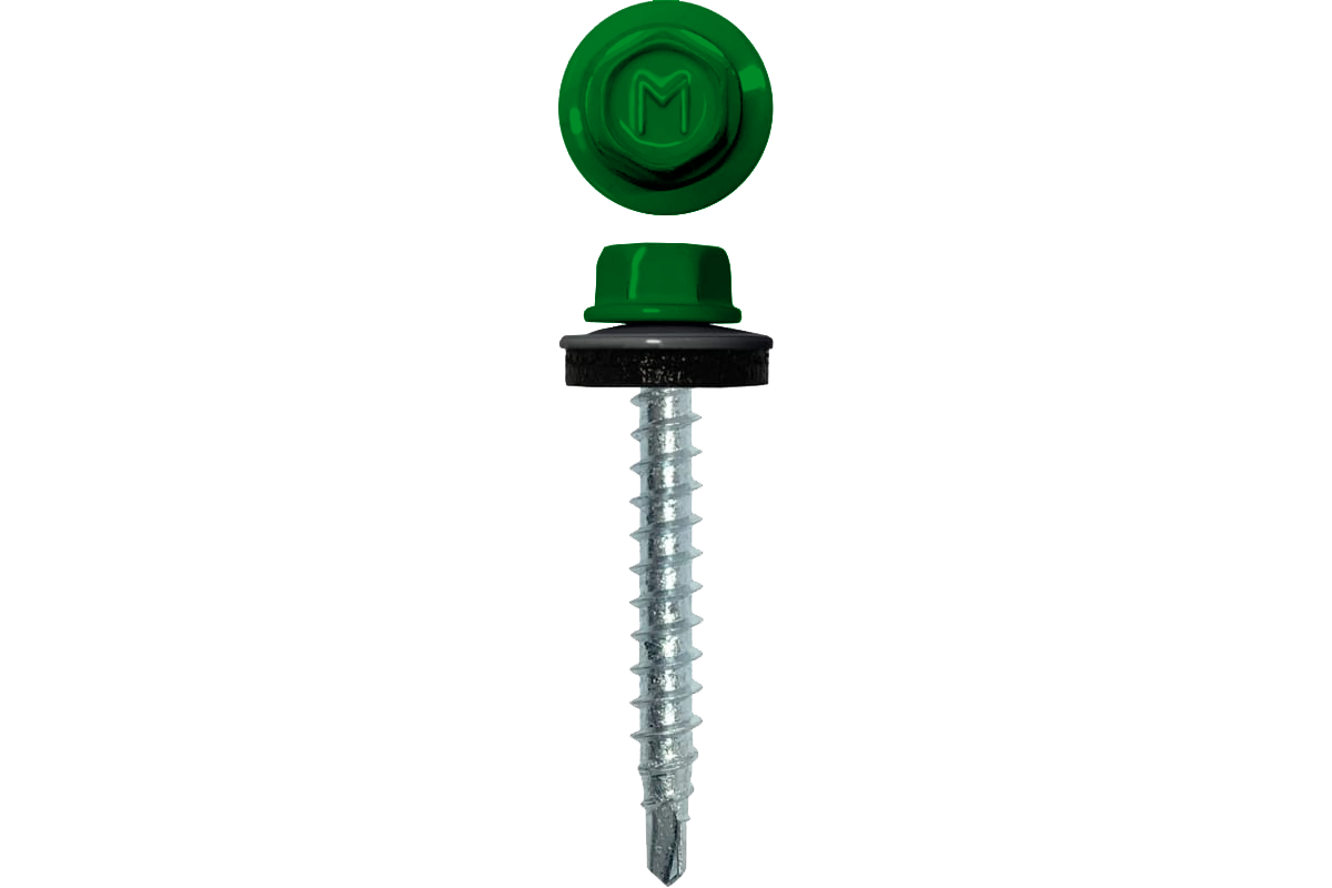 Специальная металлическая шайба с ЕРDМ - уплотнителем обеспечивает плотное прилегание профилированного металла (кровли) к деревянной обрешетке, а также препятствует попаданию влаги.