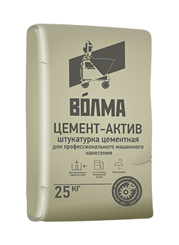 ГОСТ 31357-2007 «ВОЛМА-Цемент-Актив» - сухая легкая цементно-известковая выравнивающая штукатурная смесь на основе портландцемента с легким наполнителем и минеральными добавками, улучшающими эксплуатационные свойства раствора, трещиностойкая, для машинного нанесения на поверхности внутри и снаружи зданий.