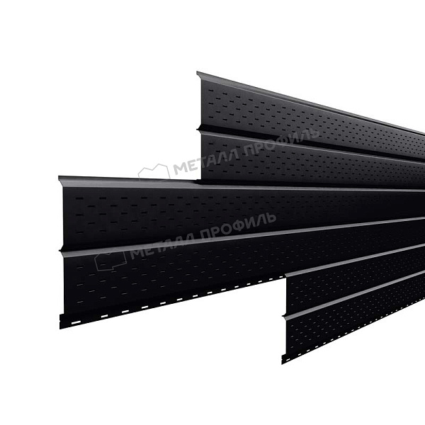 Софит – это панели сайдинга Lбрус, на поверхности которых нанесена перфорация. Используется для подшивки кровельных свесов. Софит добавляет завершённый и эстетичный вид дому. Отверстия в панелях поддерживают свободную циркуляцию воздуха под кровлей и предотвращают появление грибка, плесени, конденсата.